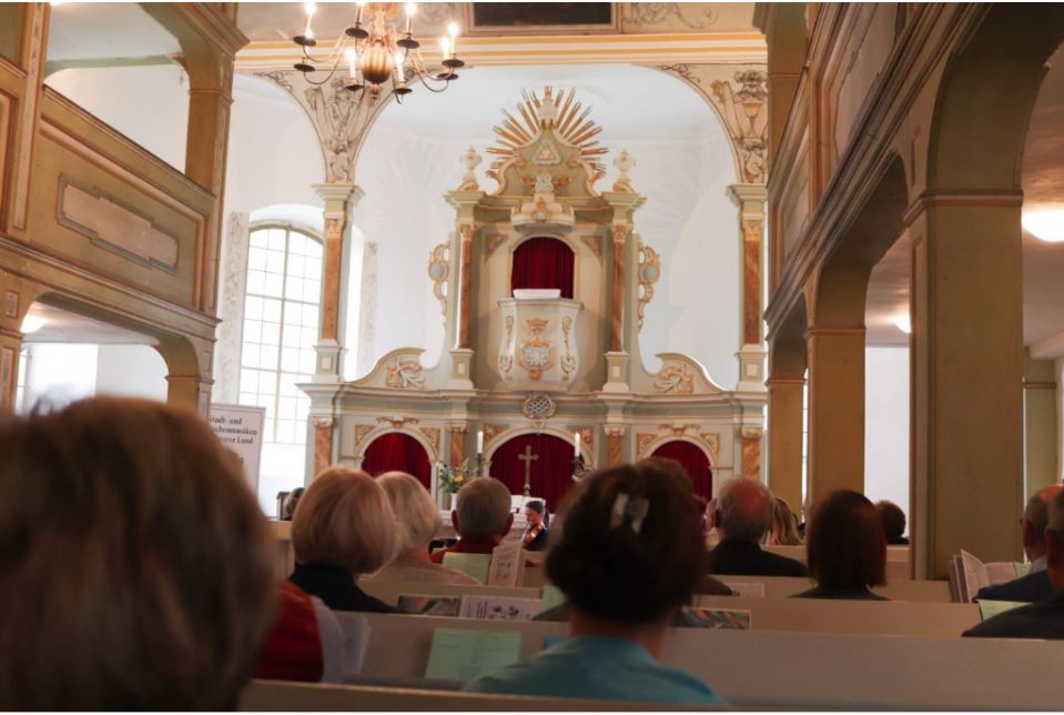 Auch die Deckenbemalung der Tonnendecke ist weitgehend erhalten.