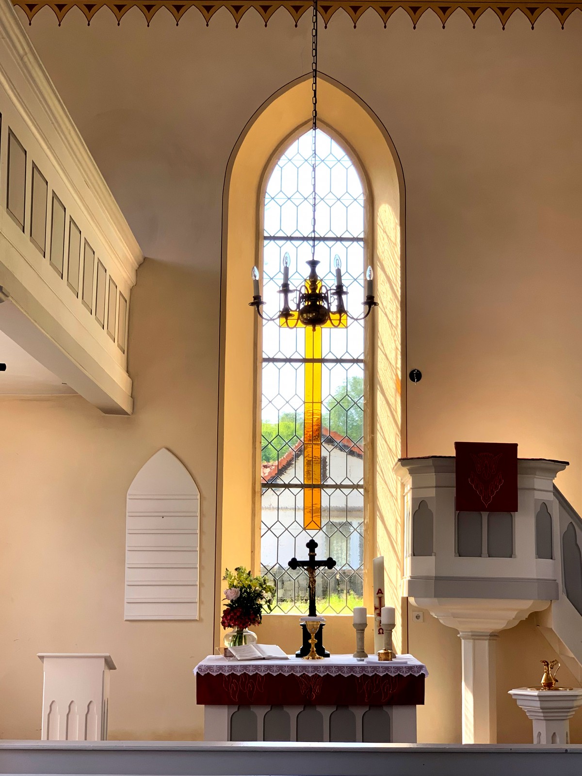 Ganz dem Stil der Neugotik verpflichtet stellt sich dem Besucher ein lichtdurchfluteter, hoher Raum dar. Optische Mitte ist der Altar an der Ostseite des Raumes.