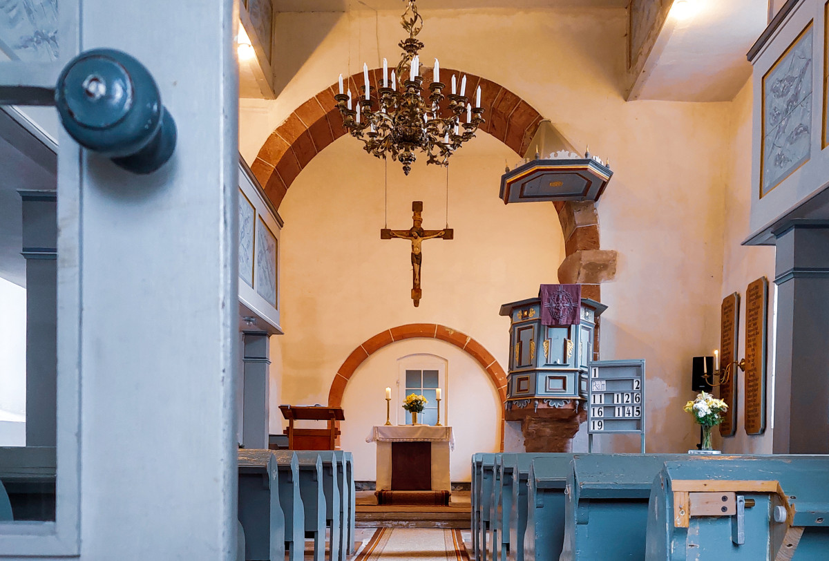 Die Marienkirche in Pferdsdorf stand -wie viele alte Kirchen- schon in rein katholischer Zeit. Anfangs stand ein kleines Gebäude mit Tonnengewölbe, dem nach Angliederung an das Kloster Fulda ein Langhaus angebaut wurde. Alte Putzreste weisen darauf hin, dass die Wände schon 1.250 n. Chr. entstanden. Es folgten Änderungen und Umbauten, die der Rotsandstein zeigt (Jahreszahl 1628). 1851 wurde der Eingang von der Nord- an die Westseite verlegt. Die alte Sakristei wurde 1999/2000 erneuert. Unser steinerner Altar trägt die Inschriften 1634 und 1934. Das Triumphkreuz ist eine Leihgabe der Kirchgemeinde Troistedt bei Nohra. Die Orgel wurde in den Jahren 1867/68 vom Orgelbaumeister Georg Friedrich Wagner aus Hersfeld gebaut und 2005 von der Firma Schönfeld aus Stadtilm aufwendig restauriert. Unsere Kirche hat zwei Stahl- und eine Bronzeglocke (1522). Herzlich willkommen zum Gottedienst, zum stillen Verweilen oder zu unserer kleinen Kirchenrallye.