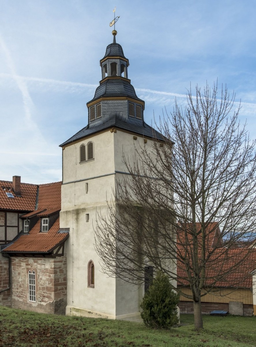 Der neue Turm entstand aus Fachwerk mit einer Schweifhaube. 1906 erfolgte die umfassende Sanierung und Ausmalung. Der Taufstein von 1549 ist ein frühes Beispiel der Renaissance.