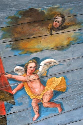 Wer die Kirche aufmerksam betrachtet, entdeckt viele Engel. Sie schauen von den Emporen, der Kanzel und aus Wolken, halten Kerzen auf dem Altar und den Baldachin über der Orgel. Einer begleitet den Evangelisten Matthäus, ein anderer redet im Auftrag Gottes mit Mose am brennenden Dornenbusch. In Jacobs Traum steigen sie auf der Himmelsleiter auf und ab. Im Garten Gethsemane tritt ein Engel tröstend an Jesu Seite. Sie erscheinen als Gesichter mit und ohne Flügel, als nackte Putti und als gewandete androgyne Wesen.