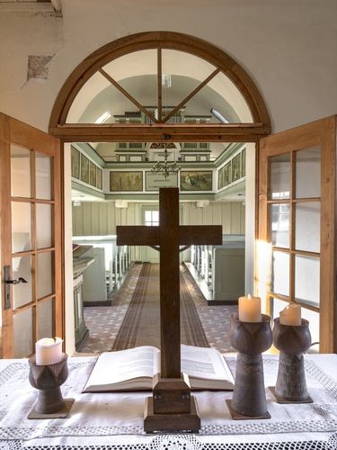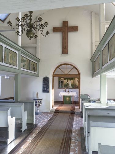 Die Kirche war ursprünglich eine Wallfahrtskapelle, die im Mittelalter eine prächtige Ausstattung besaß. Nach der Reformation verlor das Gebäude seine Bedeutung. Zwischen 1642 und 1663 erfolgte der Wiederaufbau. Im Jahr 1775 fand eine umfassende Erneuerung statt, die Glocken kamen vom baufälligen Dachturm ins Glockenhaus. Das Taufgestell aus dem 17. Jahrhundert ist bemerkenswert. Es zeigt die Stifterfamilie und nennt das Alter jedes Einzelnen. Die Ausmalung schmückt seit 1981 den Altar und die Emporen. Sie stellt die Geschichten der Apostel Petrus und Paulus dar.