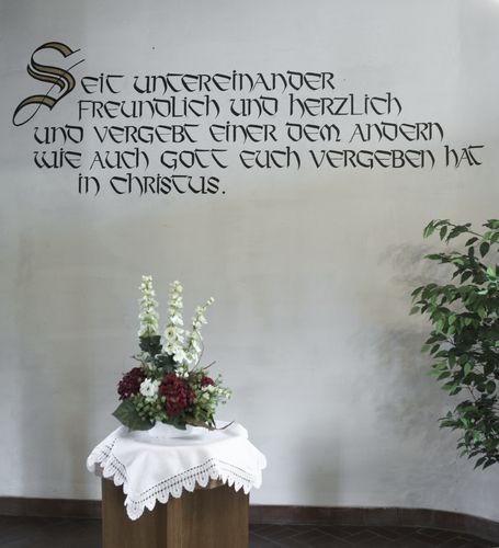 Jesus berichtet von einem Vater, der zwei Söhne hatte. Der jüngere ließ sich seinen Erbteil auszahlen, ging in die Welt, vergnügte sich und scheiterte kläglich. Als er reumütig zurückkehrte, freute sich der Vater sehr. Er ließ ihn fein einkleiden und feierte ein Fest. Darüber ärgerte sich der Bruder, der zu Hause blieb. Der Vater beruhigte ihn und bat um Nachsicht und Freude über die Rückkehr des Bruders. (Lk. 15, 11 – 32) Ein Satz des Apostels Paulus (Eph. 4,32) ergänzt das Bild.