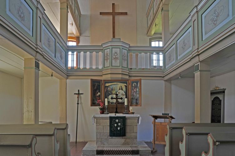 Die elegante Fachwerkkirche St. Anna entstand 1787. Den Altar ziert ein Triptychon von Lisa Beyer-Jatzlau. Die Mitteltafel stellt zwei Jünger bei der Begegnung mit dem auferstandenen Christus in Emmaus dar. Als sie gemeinsam speisten erkannten sie ihn erst. Das Gemälde erinnert die Gemeindeglieder daran, dass Jesus beim Abendmahl unter ihnen weilt. Der linke Altarflügel erzählt von der Geburt Christi, der rechte Flügel zeigt Jesus im Garten Gethsemane.