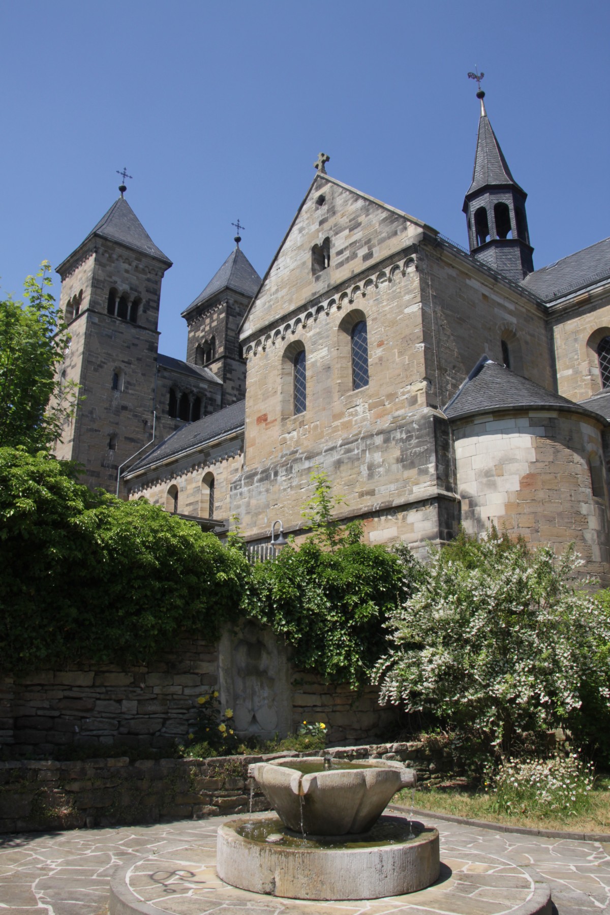 Die Bausubstanz des Altarraums mit Apsis und des Querschiffes sind weitestgehend im Orginal erhalten. Das dreischiffige Langhaus mit Pfeilerarkaden und die Türme wurden auf den romanischen Grundmauern frei rekonstruiert.
