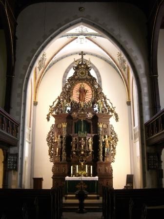 • Besonderheiten: romanischer Taufstein, gotisches Kruzifix, Kanzelaltar