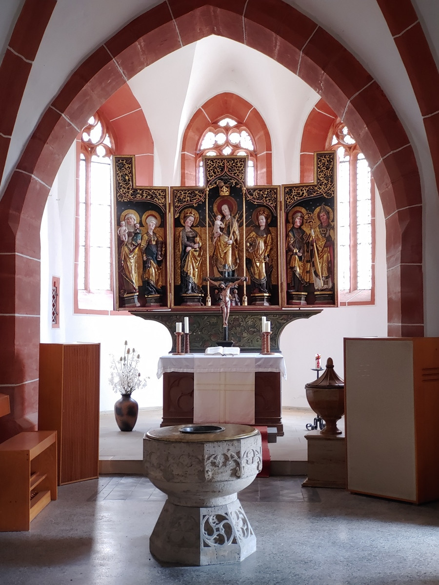 Das Taufbecken aus gotischer Zeit stand im 19. Jahrhundert eine zeitlang als Wassertrog im Gehöft eines Schuhmachers, bis es dann im 20. Jahrhundert wieder in die Kirche zurückgeholt wurde.