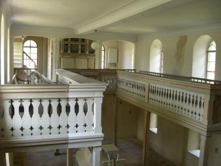 Die ältere Saalkirche bekam Fenster mit Rundfenstern und wurde um eine Fensterachse nach Westen verlängert. Auf der Nordseite befindet sich ein zweigeschossiger Anbau mit Patronatsloge aus dem 18. Jahrhundert.