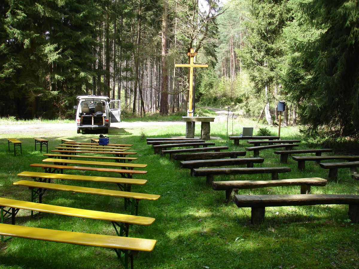 Jedes Jahr finden hier im Freien Gottesdienste statt. Regelmäßig am Himmelfahrtstag um 14.00 Uhr mit anschließendem Kaffetrinken - jeder bringt was mit