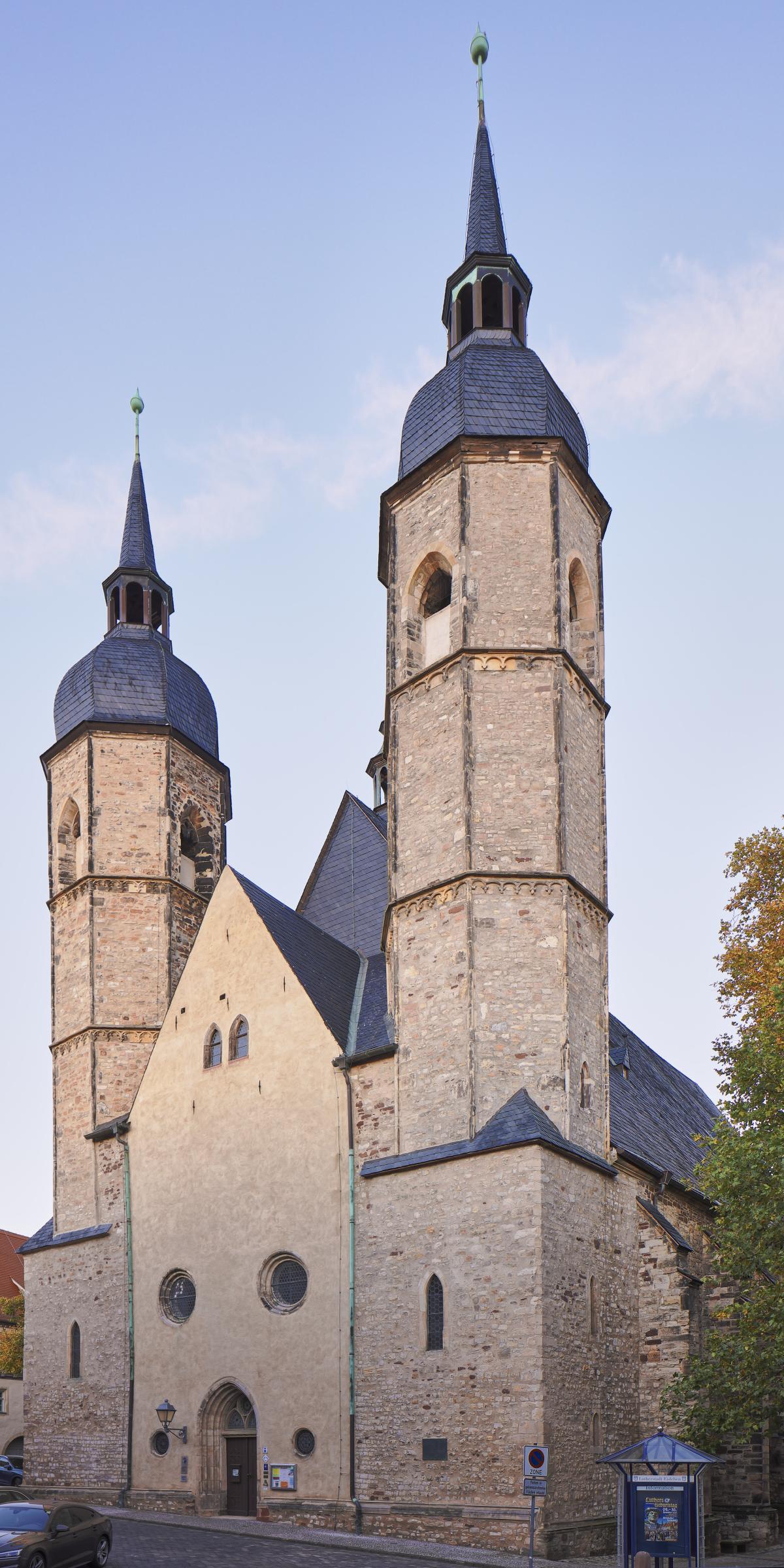- Besonderheiten: Luthers letzte Predigtkirche, Kirche mit original erhaltener Kanzel, in der Nähe befinden sich Luthers Geburts- und Sterbehaus, vierflügliger Marienaltar, Grabmale der Mansfelder Grafen, Hallenkirche