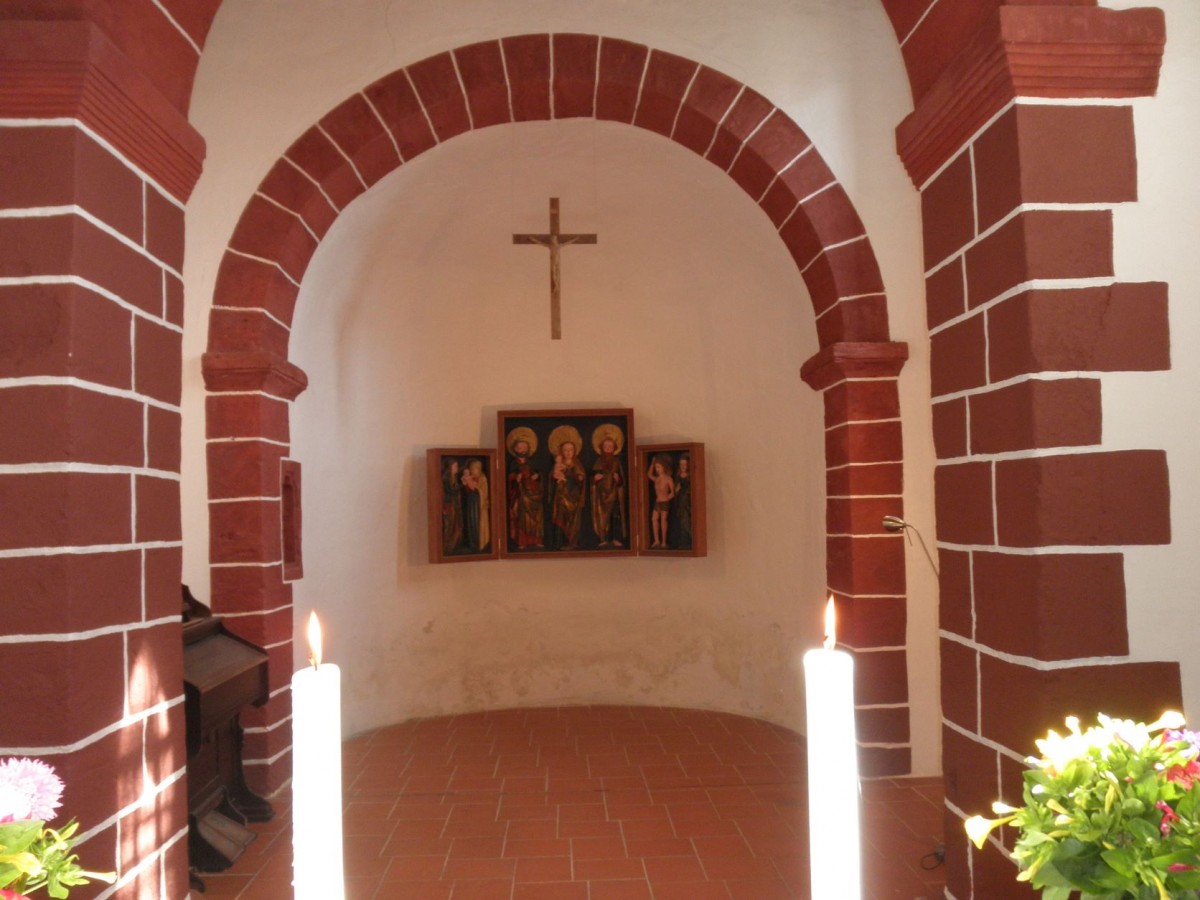 - Besonderheiten: Für eine Dorfkirche sehr prächtige romanische Ausstattung im Chorturm,