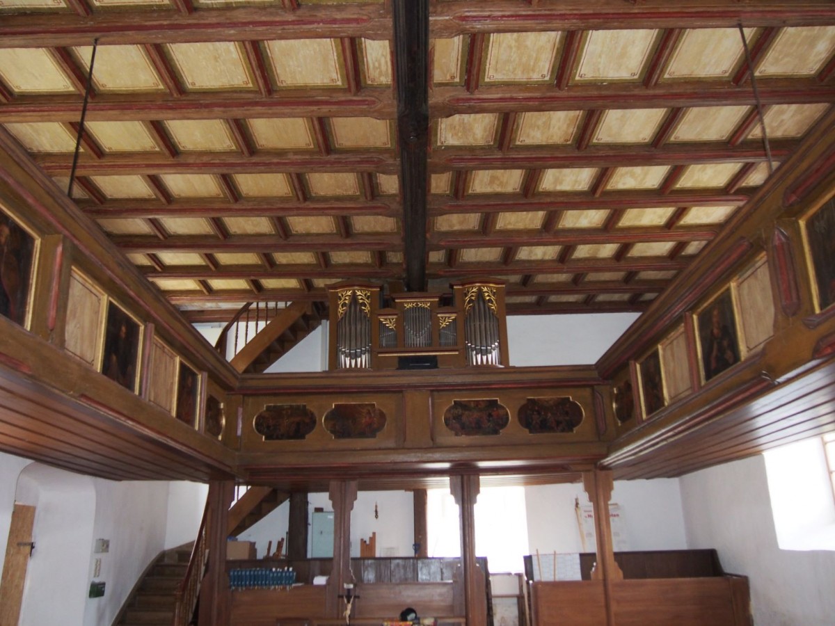 Die Balkendecke entstand 1722, wie auch die Kanzel mit dem sächsischen Wappen. Die Emporen wurden später eingebaut. 1842 wurde der Kanzelaltar wahrscheinlich vom mittleren Triumphbogen in den vorderen Triumphbogen vorgerückt, die Fenster auf der Nordseite wurden eingebaut. 1846 entstand die Südempore, Nord- und Orgelemporen sind älter. Die Bilder an den Emporen könnten aus dieser Zeit stammen.