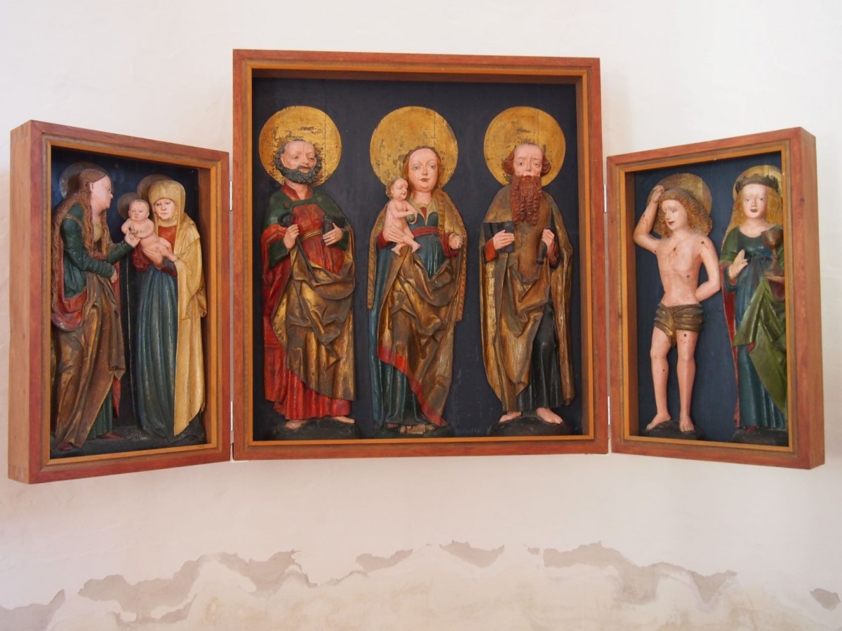 Der Flügelaltar mit den Figuren unserer Kirche wurde in den kirchlichen Werkstätten in Erfurt restauriert und fügt sich nun gut in der Apsis ein.