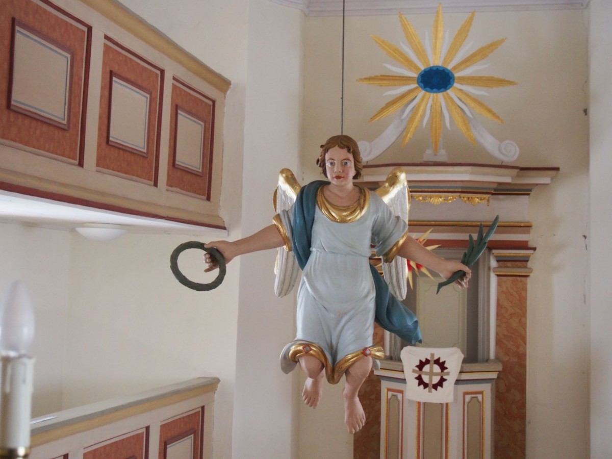 2007 wurde der restaurierte Taufengel wieder im Kirchenschiff angebracht.