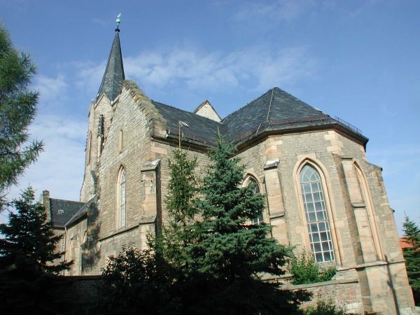 vom Seeberg bei Gotha. Das Kircheninnere ist im neogotischen Stil gestaltet.