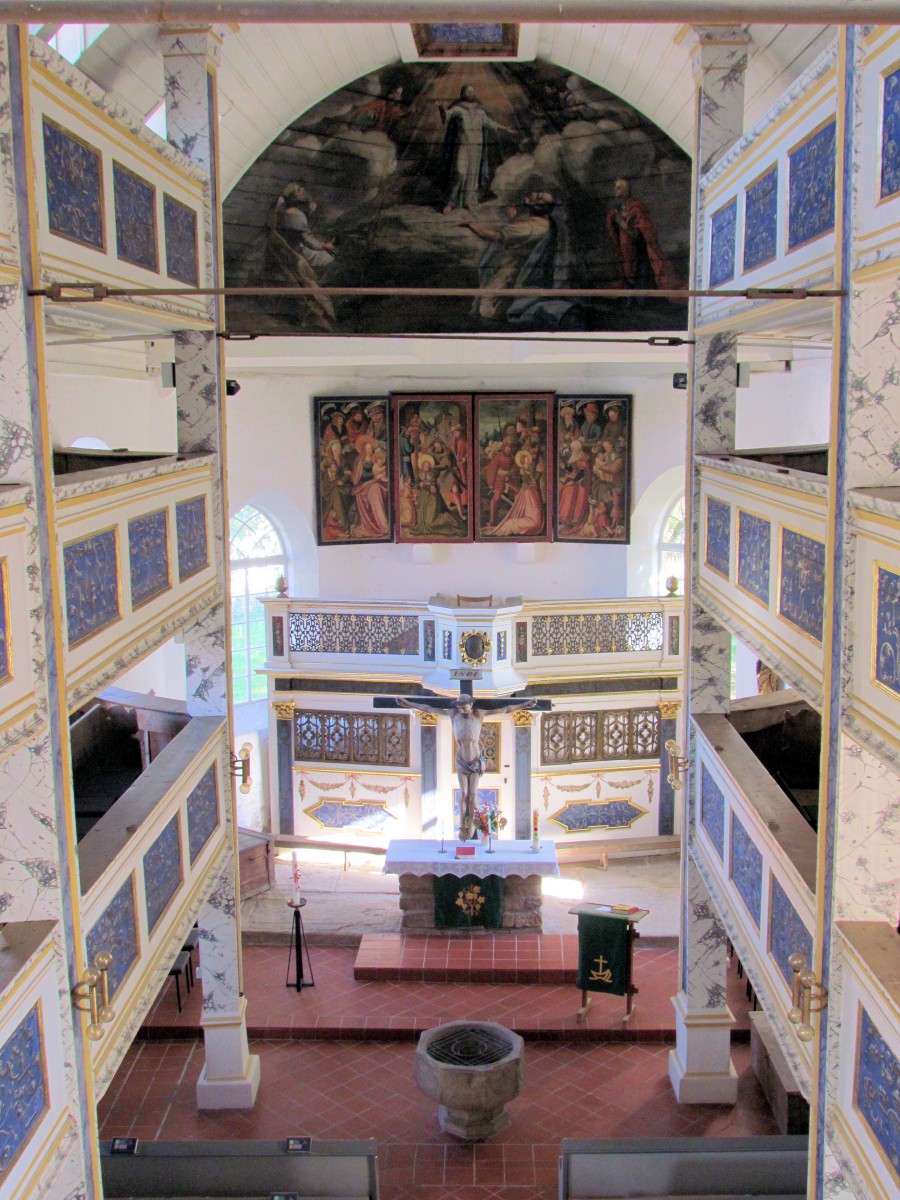 Nach der Wende befanden sich Bauwerk und Innenraum in stark verschlissenem Zustand. Mit vielfältiger Unterstützung, auch unter Einsatz von Fördermitteln und Mitteln der Stiftung Denkmalschutz, gelang es sowohl das Dach, die Außenhaut des Kirchenschiffes und den Turm zu sanieren. Doch besonders stolz sind wir auf die stufenweise Restaurierung unserer Innenausstattung, die nun wieder eindrucksvoll ihre Schönheit präsentieren kann. Seit diesem Jahr gehen nun die Sanierungsarbeiten an der Orgel weiter.