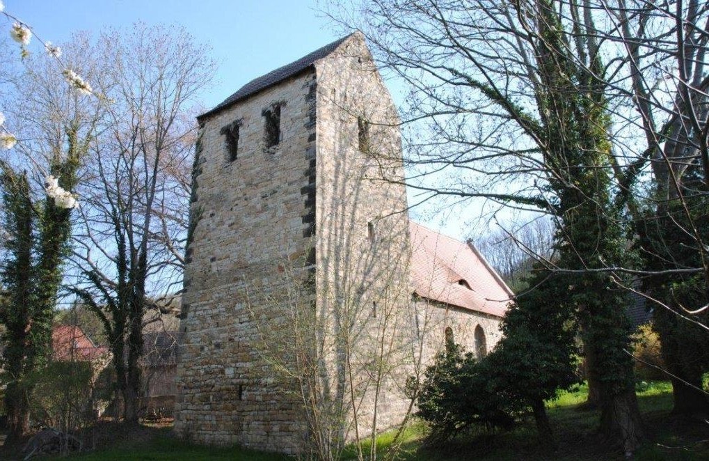 Im Turm der Kirche tönen durch die romanischen Schallarkaden zwei wertvolle, unmittelbar aufeinander folgend entstandene Glocken nach draußen - die kleinere Glocke wurde 1601 durch Georg Wolters gegossen und erwähnt immerhin den Pastor der damaligen Zeit - einen Herrn namens Andreas Zahn. Die heutige größere Glocke wurde durch Eckhardt Kucher aus Erfurt gegossen, von dem auch im recht nah gelegenen Zscherben noch ein Instrument findet. 1598 kam dieses Instrument auf den Turm. Beide Glocken hängen in einem 1860 geschaffenen Glockenstuhl mit einfachen Streben an ihren originalen Jochen und wurden 2011 mit neuen Klöppeln und einer neuen Steuerung versehen. Ein drittes Gefach im Stuhl ist leer, über die eventuelle kleinste Schwester des Geläutepaares nichts bekannt. Beide Glocken zeigen unverwechselbare, farbige Klänge, harmonieren aber auch sehr gut miteinander und machen viel Freude beim Zuhören.