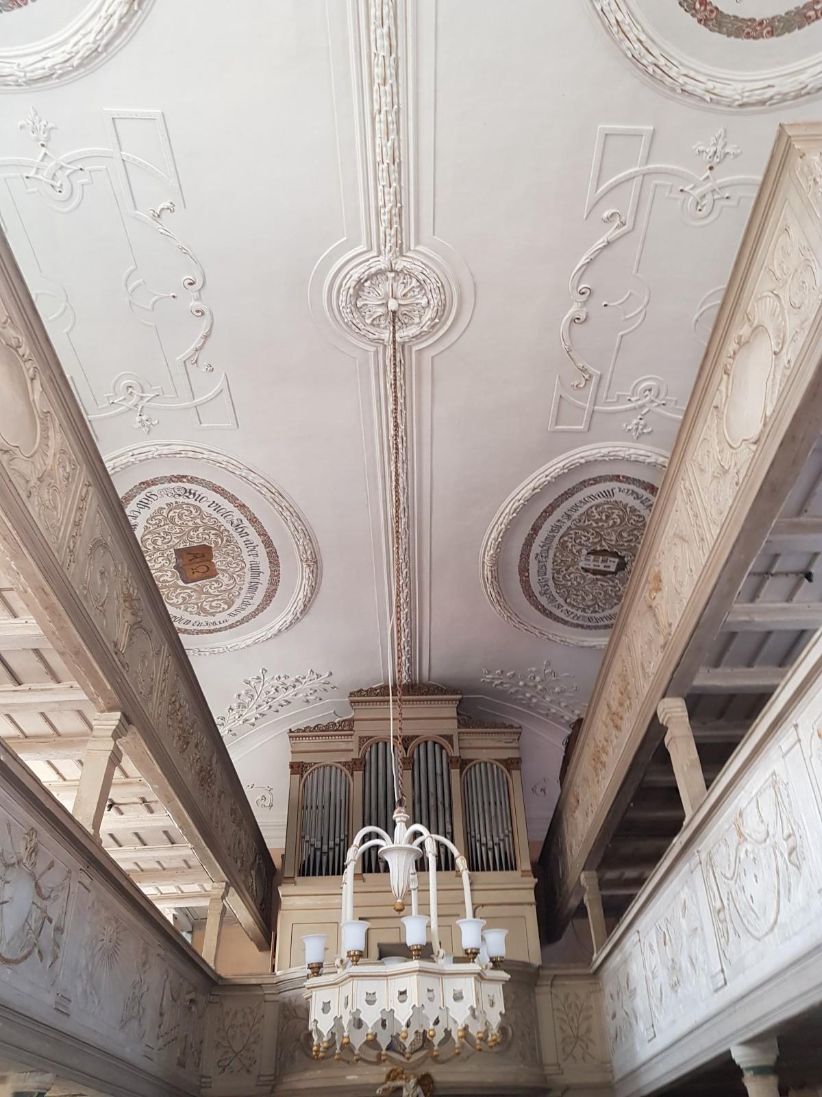 Die Orgel, hinter einem sehr passend gestalteten klassizistisch-feinen Prospekt stehend, schuf 1858 August Ferdinand Wäldner aus Halle mit zwei Manualen und mechanischen Schleifladen, auf denen 13 Register zu stehen kommen. Leider ist das wertvolle Werk heute stark verwurmt und nahezu unspielbar.