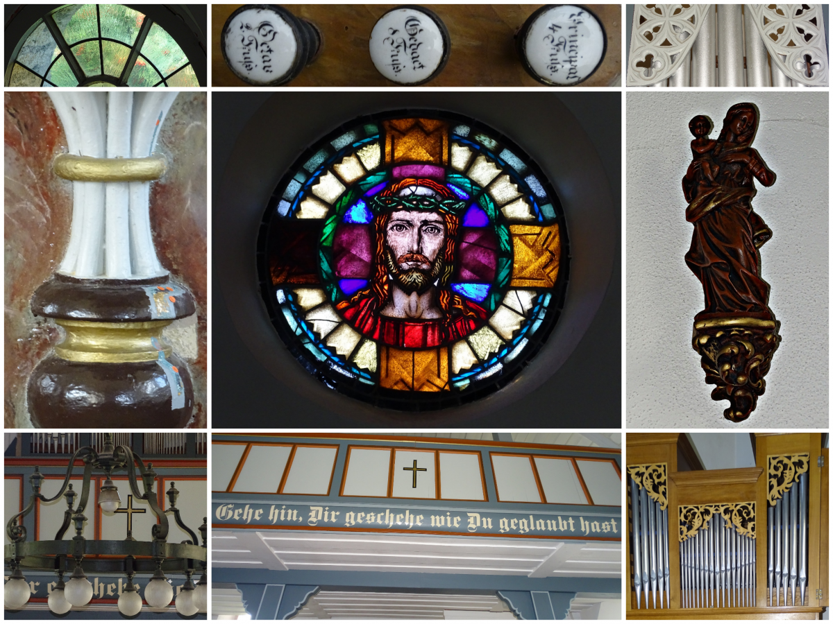 Über dem Altar befindet sich ein rundes bleiverglastes Buntglasfenster mit einem Christuskopf auf einem Kreuz. Dieses von einem unbekannten Künstler geschaffene Bild gab den Impuls zur Namensgebung der Kirche am 18. September 2004 als “Christuskirche”.