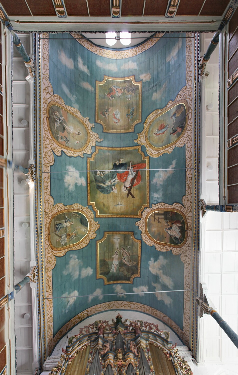 Auf dem Tonnengewölbe sind dargestellt: Ankündigung der Geburt; Jesu Taufe; Verklärung Jesu; Auferstehung; Erscheinung des Auferstandenen vor den Jüngern; Christus neben dem Vater thronend.