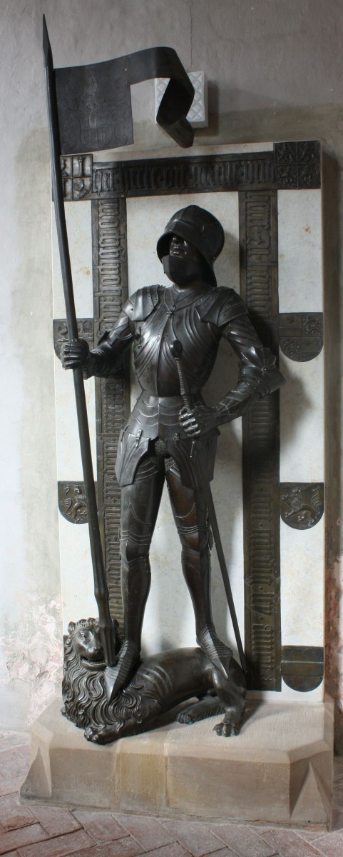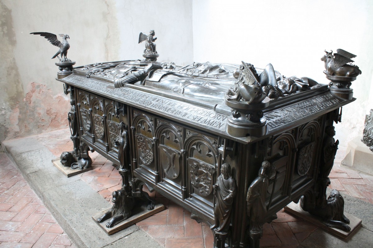 Eine steinerne Inschrift über dem Eingangsportal gibt Zeugnis vom Bau der Kirche und der Stiftung. Die wertvollsten Ausstattungsstücke der Kirche sind die bronzenen Grabdenkmäler, die in der Werkstatt des Nürnberger Erzgießers Peter Vischer und seiner Söhne entstanden sind.