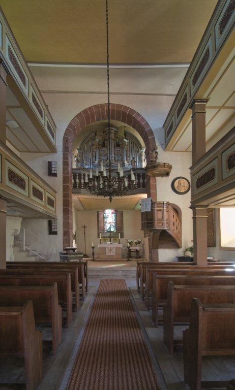 Der "Ambo" dient als Lesepult und als Taufstein, wenn man den Deckel herunterhebt. Wort und Sakrament sind so in einem Möbel "vereint". Hinter dem um 1750 gebauten Orgelprospekt verbirgt sich eine pneumatische Rühlmann-Orgel mit 19 Registern, die 1903 eingebaut wurde. Sie wurde 2003/4 restauriert.