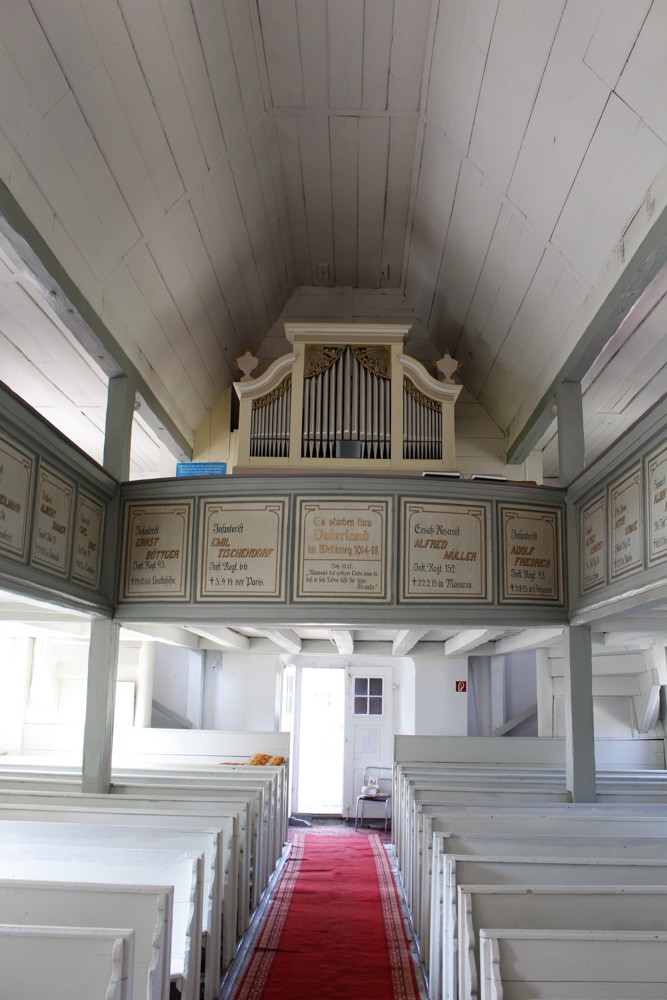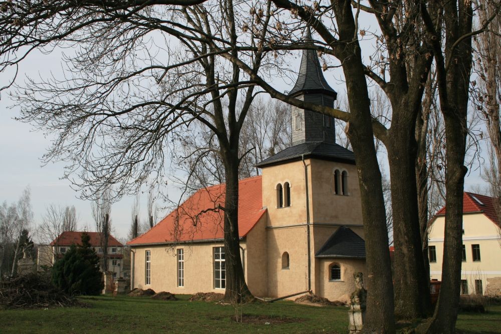 Der heimliche Star im Ort ist die auf einem kleinen Hügel gelegene Dorfkirche mit ihrer Wandmalerei in der Apsis aus dem 11. Jahrhundert. Zur DDR Zeit wurde die Kirche durch Vandalismus sehr zerstört. Nach der Wende bekam sie ein neues Dach, Außen- und Innenputz, eine neue Orgel aus dem abgebaggerten Schwerzau und eine neue Turmuhr sowie eine Bankheizung.