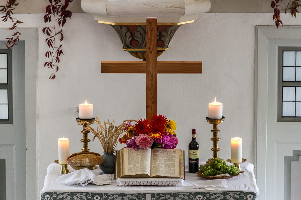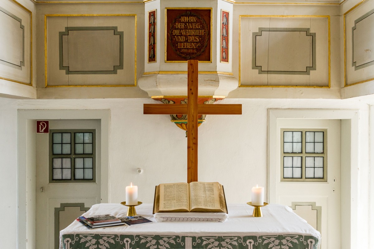 Im Innern der Kirche befindet sich eine umlaufender Empore mit der Kanzel an der Ostseite und einer Orgel an der Westseite. Erwähnenswerte Ausstattungsstücke der Kirche sind eine Schnitzfigur der Anna Selbdritt (um 1500), der Kruzifixus aus dem 16. Jh., die Orgel von 1804. An der Ostwand sind ein Inschriftstein und ein Gedenkstein angebracht.