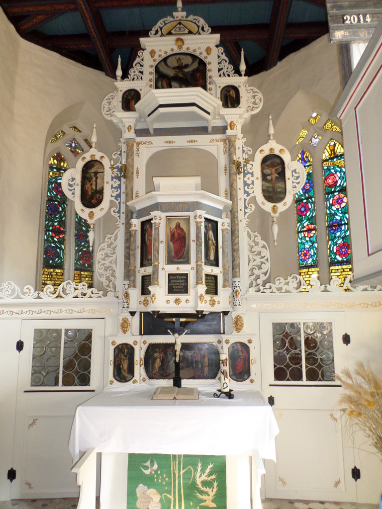 Die Kirche besitzt den ältesten hölzernen Kanzelaltar Deutschlands.