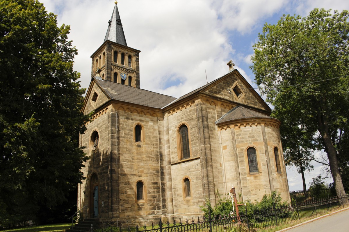 1846 - 1848 - Bau der jetzigen bereits dritten Kirche im neuromanischen Stil aus Sandstein. Aufgrund der sehr guten Akustik eignet sich das Gebäude sehr gut für Konzerte jeglicher Art.