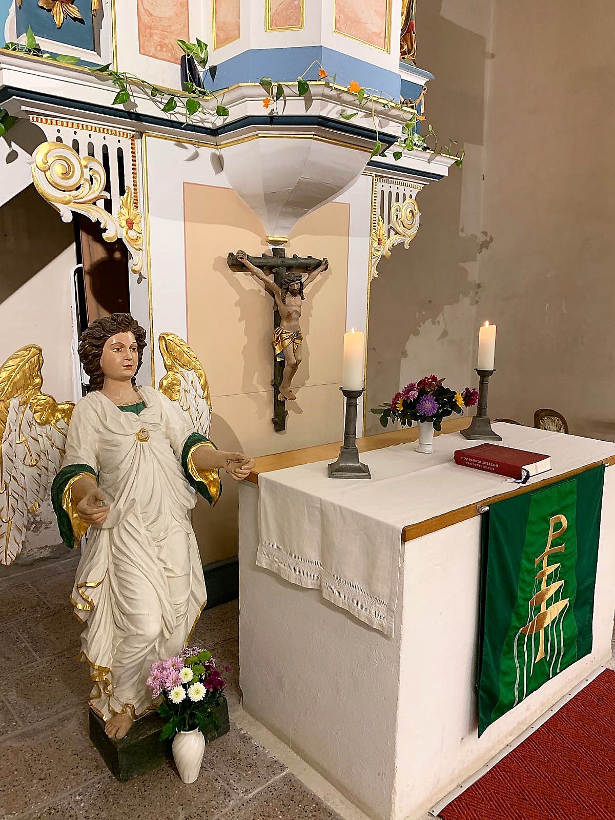 - Besonderheiten: An den beiden Seiten der Kanzel stehen zwei spätgotische Schnitzfiguren aus dem 16. Jahrhundert: Petrus und Paulus, die der Kirche den Namen gaben.