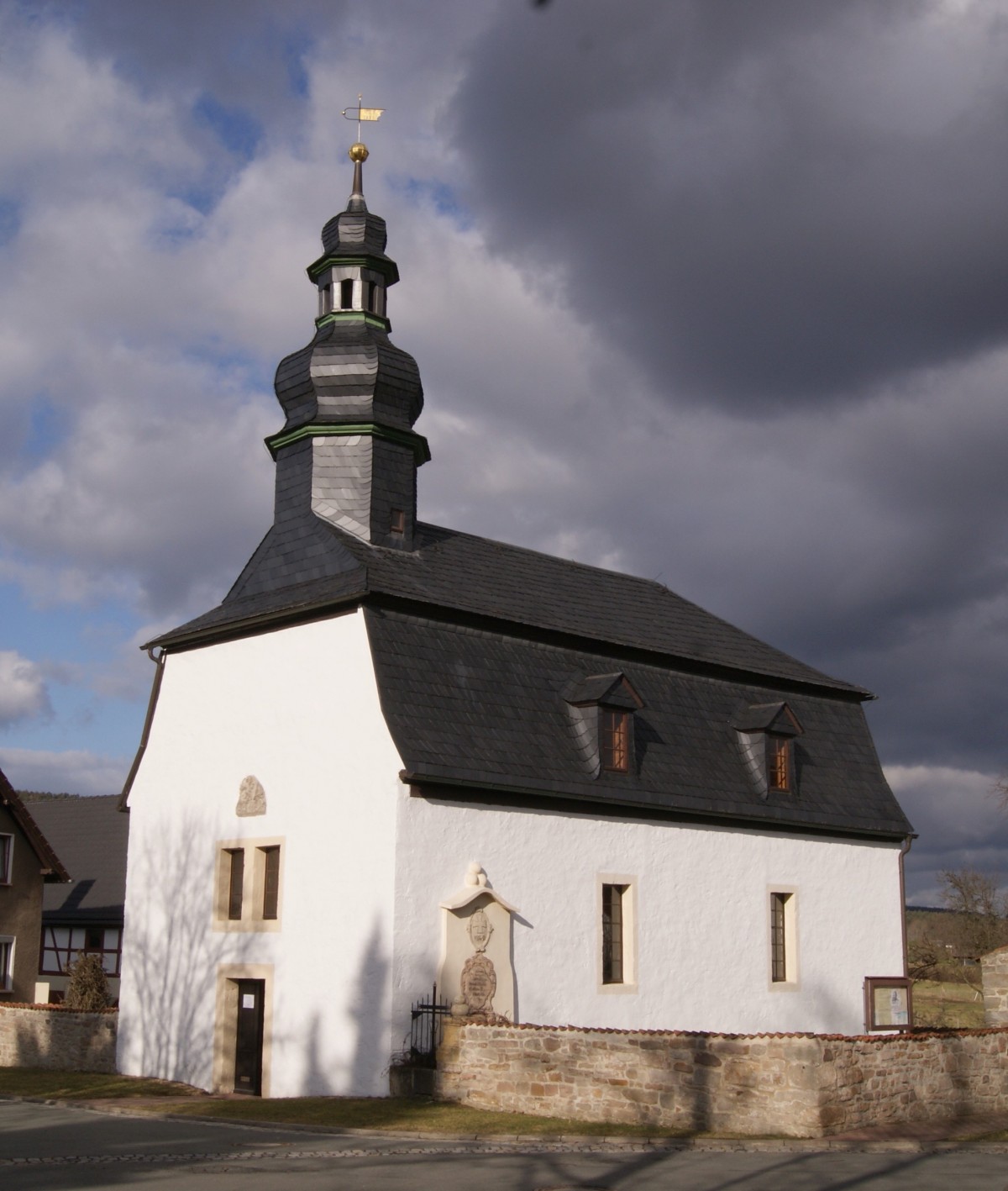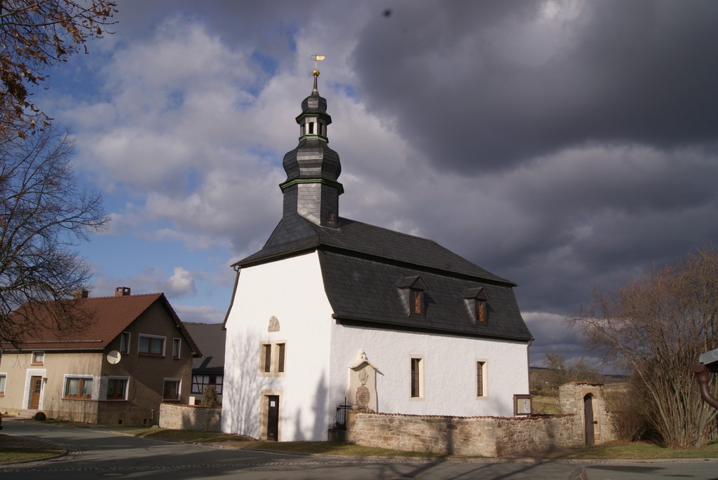 Besonderheiten: Drei Schnitzfiguren, Maria mit dem Kind und die Heiligen Laurentius und Antonius, von einem Schüler Tilmann Riemenschneider.