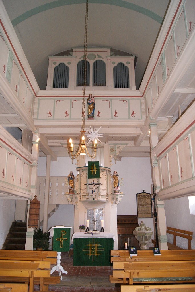 Die Kirche wurde 1724 errichtet und am 6. November 1725 eingeweiht. Die Kirche hat einen Kanzelaltar und zwei Emporen. Auf der zweiten Empore über dem Kanzelaltar befindet sich eine Orgel aus dem Jahr 1875 vom Orgelbauer Dornheim.