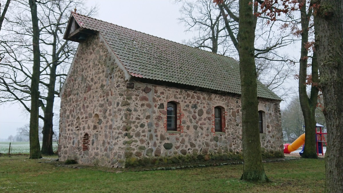 Die Kirche wurde aus unregelmäßig und regellos versetzten Feldsteinen erbaut.