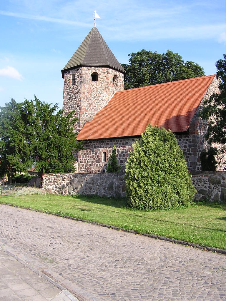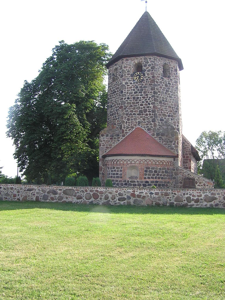Die Feldsteinkirche ist ein romanisches Gebäude aus dem 13. Jahrhundert und zugleich die älteste Chorturmkirche in der Region Altmark. Die Apsis schließt sich an den Glockenturm an, der über dem Ansatz des Daches von einem Viereck in ein Achteck übergeht. Die Apsis ist durch einen Fries auf Konsolen geschmückt, das ursprüngliche Patrozinium war das des Johannes.