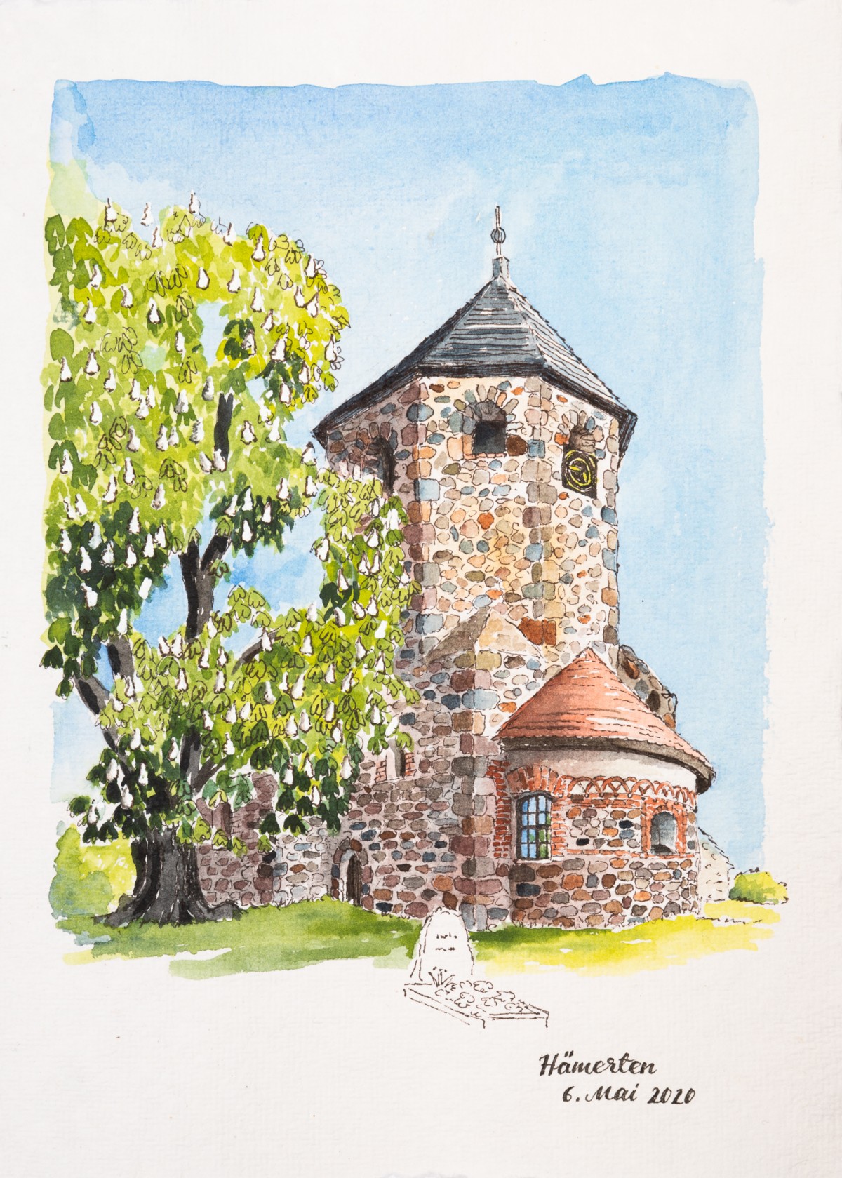 Die Dorfkirche in Hämerten gehört zu den sieben sogenannten Verkehrten Kirchen in der Altmark, der Kirchturm steht nicht, wie sonst üblich im Westen, sondern im Osten über dem Altar.