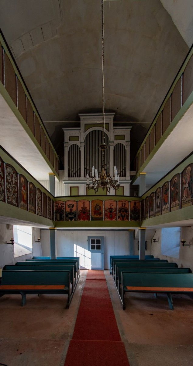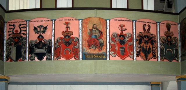 An den Brüstungsfeldern der Emporen sieht man elf Apostelbilder und manieristische Ornamente des 16. Jhd.