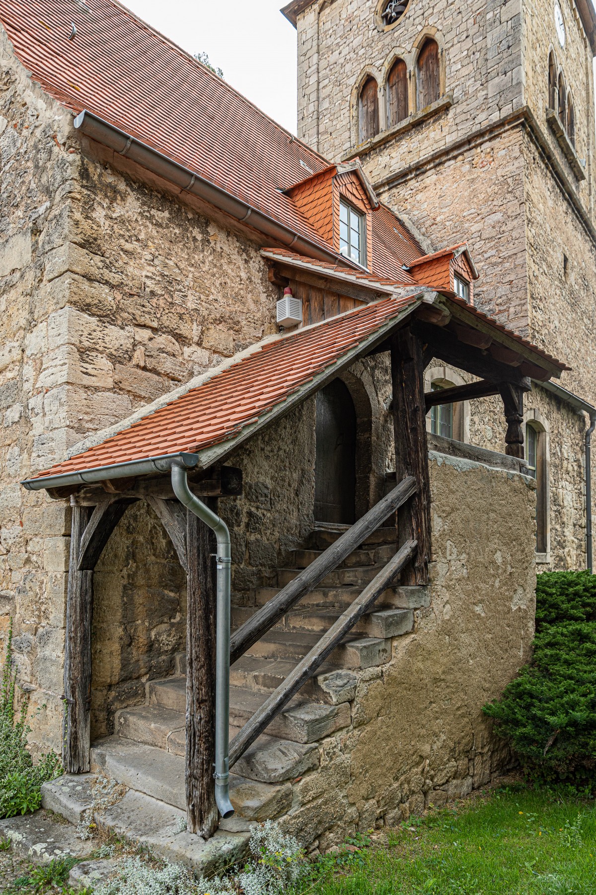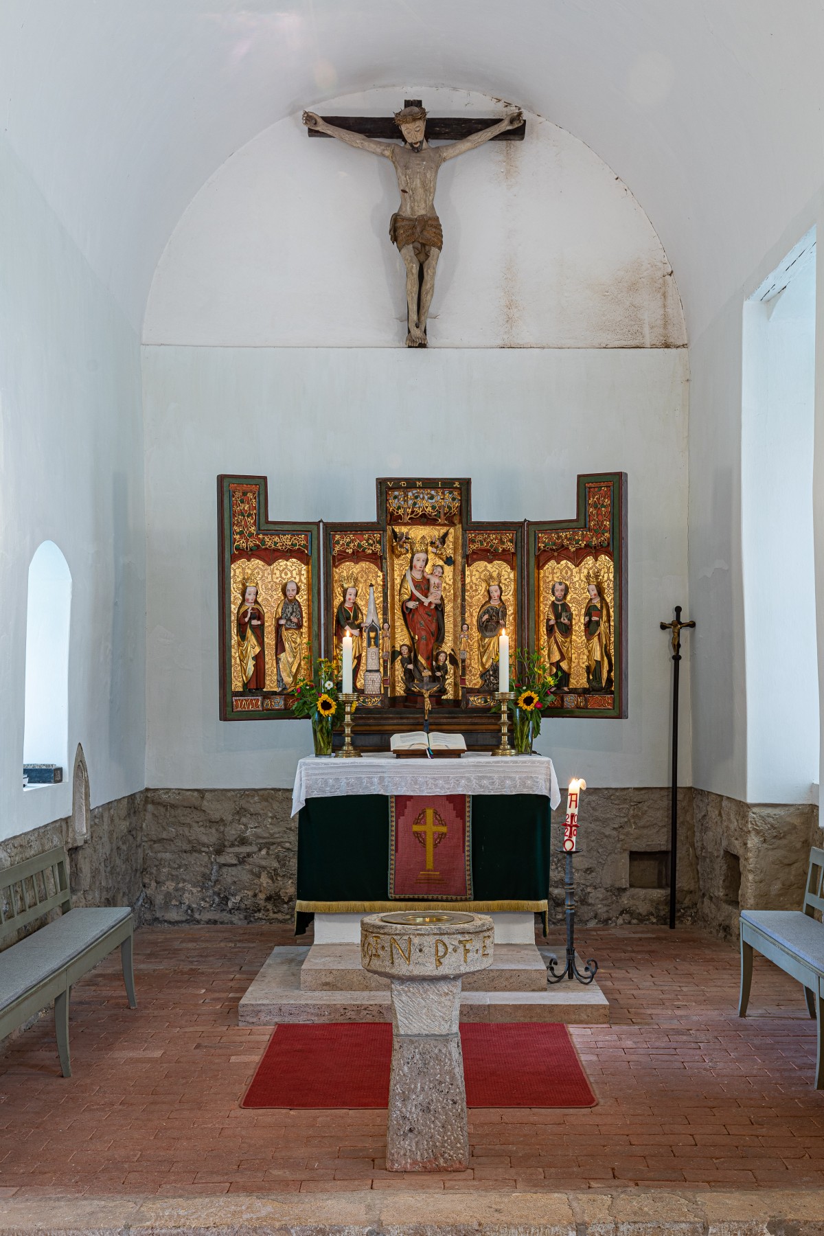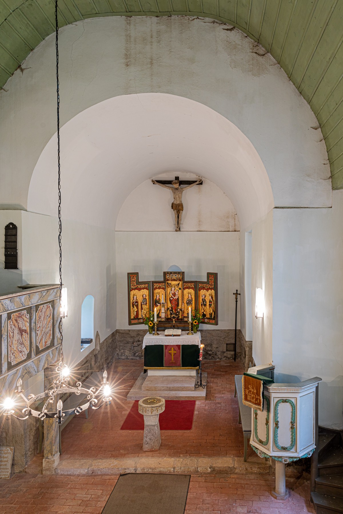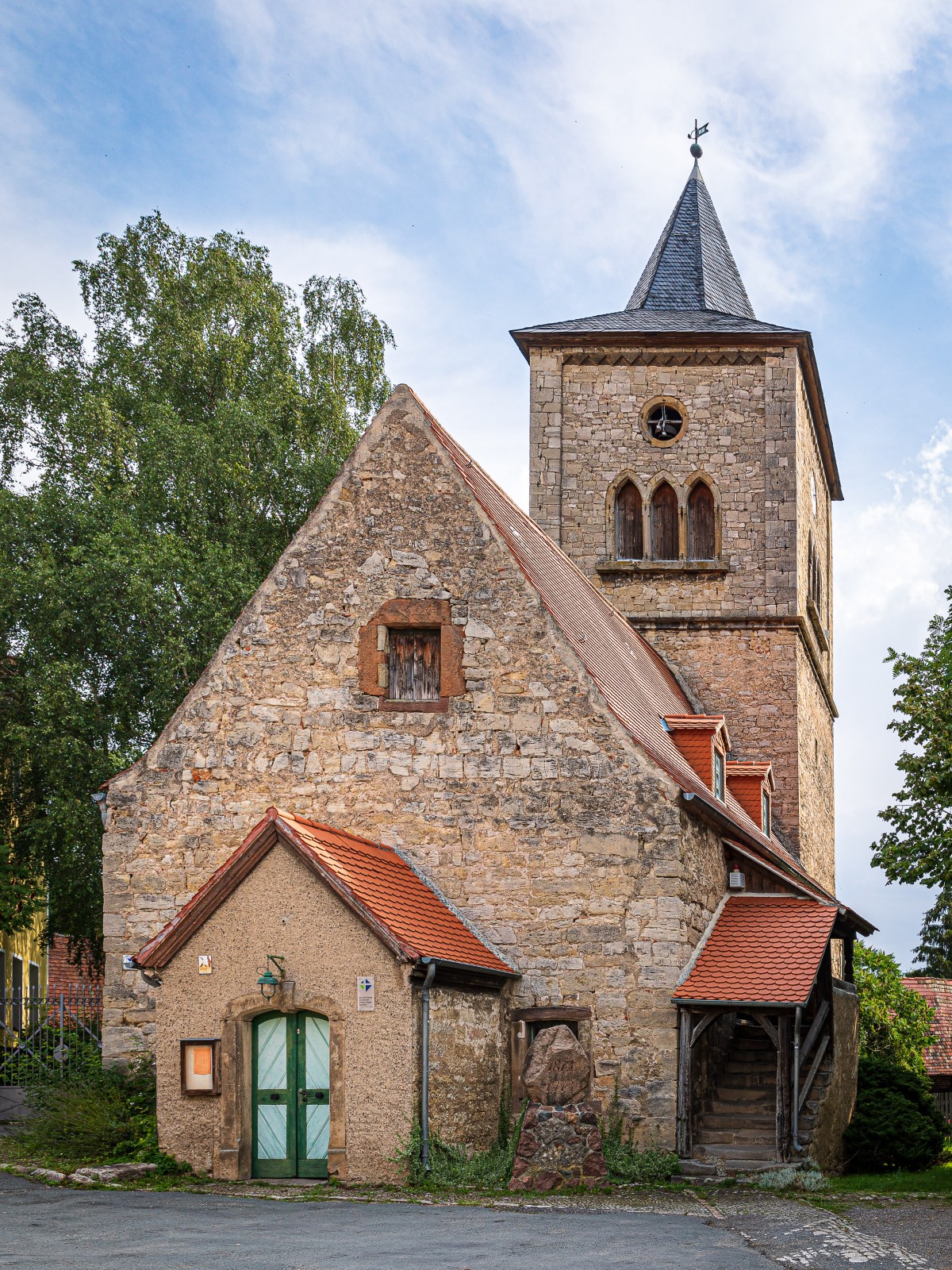 Als wichtigstes und bedeutendstes Inventar darf der aus dem Jahr 1492 stammende Flügelaltar gelten. Er wurde durch die Jenaer Werkstatt Linde gefertigt und zeigt Maria als Himmelskönigin auf der Mondsichel im Strahlenkranz mit dem Kind auf dem Arm. Weitere Figuren zeigen Petrus und Paulus sowie die Heiligen Dorothea, Barbara, Katharina und Margareta mit ihren jeweiligen Insignien. Ein möglicherweise nachreformatorischer Zusatz könnten die Buchstabenfolge "V D M I AE" sein (verbum dei manet in aeternum = das Wort Gottes bleibt in Ewigkeit). Geschlossen zeigt der Flügelaltar die Verkündigung des Erzengels Gabriel an die Jungfrau Maria. Aus der selben Werkstatt stammt das Kruzifix über dem Altar, das Anfang des 16. Jahrhunderts in die Kirche kam.