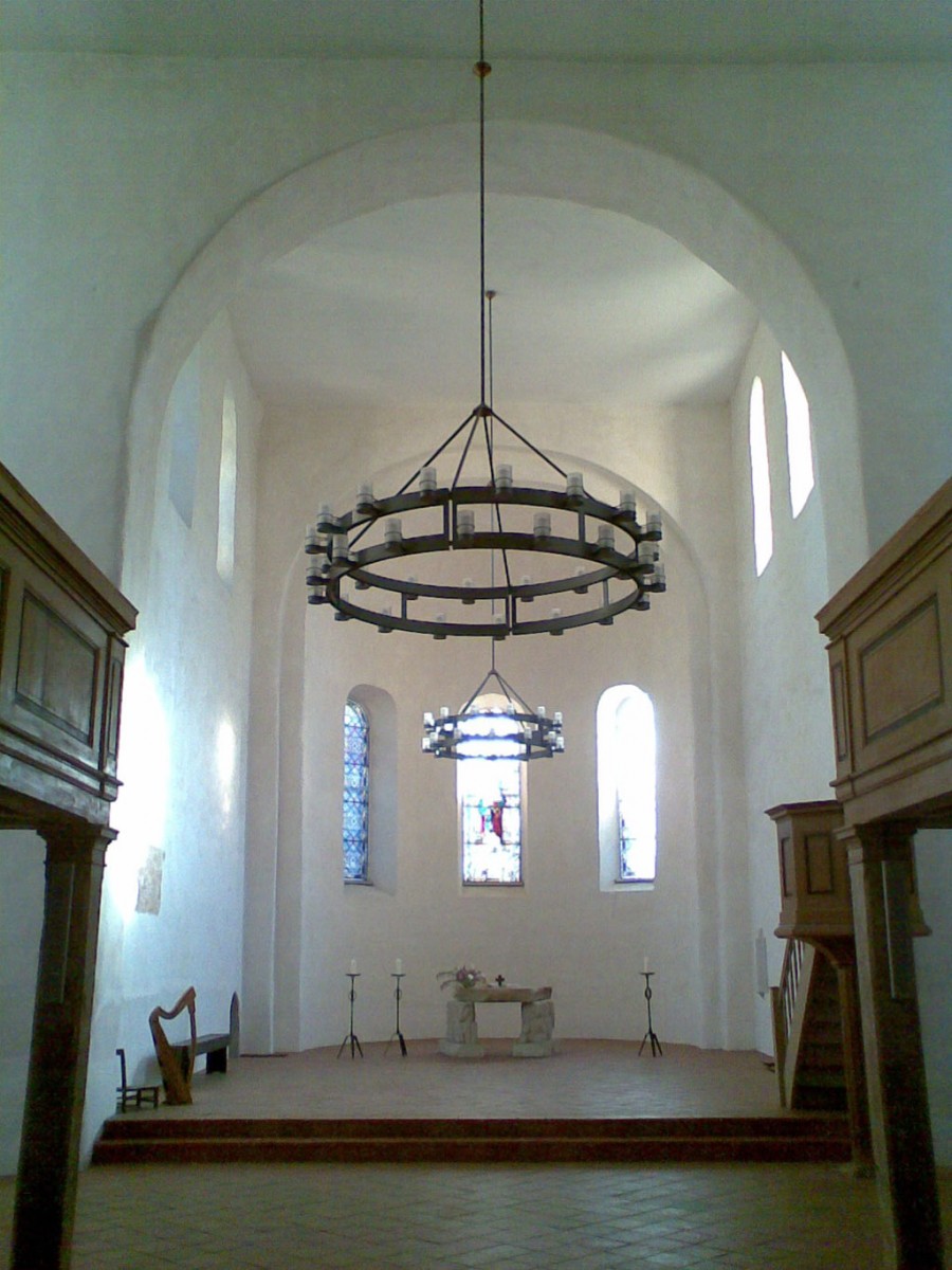 In der romanischen Kirche von Wergzahna befindet sich an der Nordwand diese Madonna. Beeindruckend ist die Farbe Kobaldblau, die der Figur ihren unverwechselbaren Charakter verleiht. Ihre Krone mag im Laufe der Zeit alle Arabesken und allen Zierrat verloren haben. Eine schlichte Mütze ist übrig geblieben. Die Augen sind geschlossen - und das Kind ist nackt und liegt wehrlos in den wenig liebevoll wirkenden Händen der Mutter. Sie gibt ihr Kind mehr hin, als sie es beschützt. Sie liefert es aus - in die Hände der sich zur Eucharistie versammelnden Gemeinde. Christus ist hier die Hostie, das Brot, unter dessen Gestalt sich das Göttliche bereit hält für die, die an das Wunder glauben, dass Gott in Christus Mensch geworden ist und wir ihn in Gestalt des Brotes beim Abendmahl leibhaftig aufnehmen und genießen.